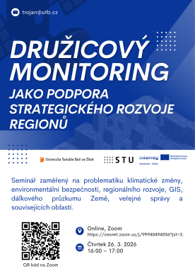 Seminář je určen především odborníkům, akademickým pracovníkům a výzkumníkům z UTB a STU, kteří se zabývají problematikou klimatické změny, environmentální bezpečnosti, regionálního rozvoje, GIS, dálkového průzkumu Země, veřejné správy a příbuzných oborů.